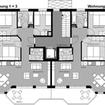 Die Gesamtfläche der Terrassen pro Wohnung beträgt ca. 22 m2.